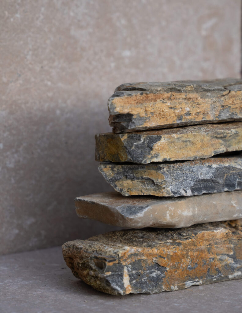 Lapide Rocks Bukarest BK12R is a natural stone selection defined by rugged texture and a unique mix of blue, yellow and brown nuances. Ideal for landscape walls, terraces and architectural outdoor elements, it brings strength and expressive character to any setting.