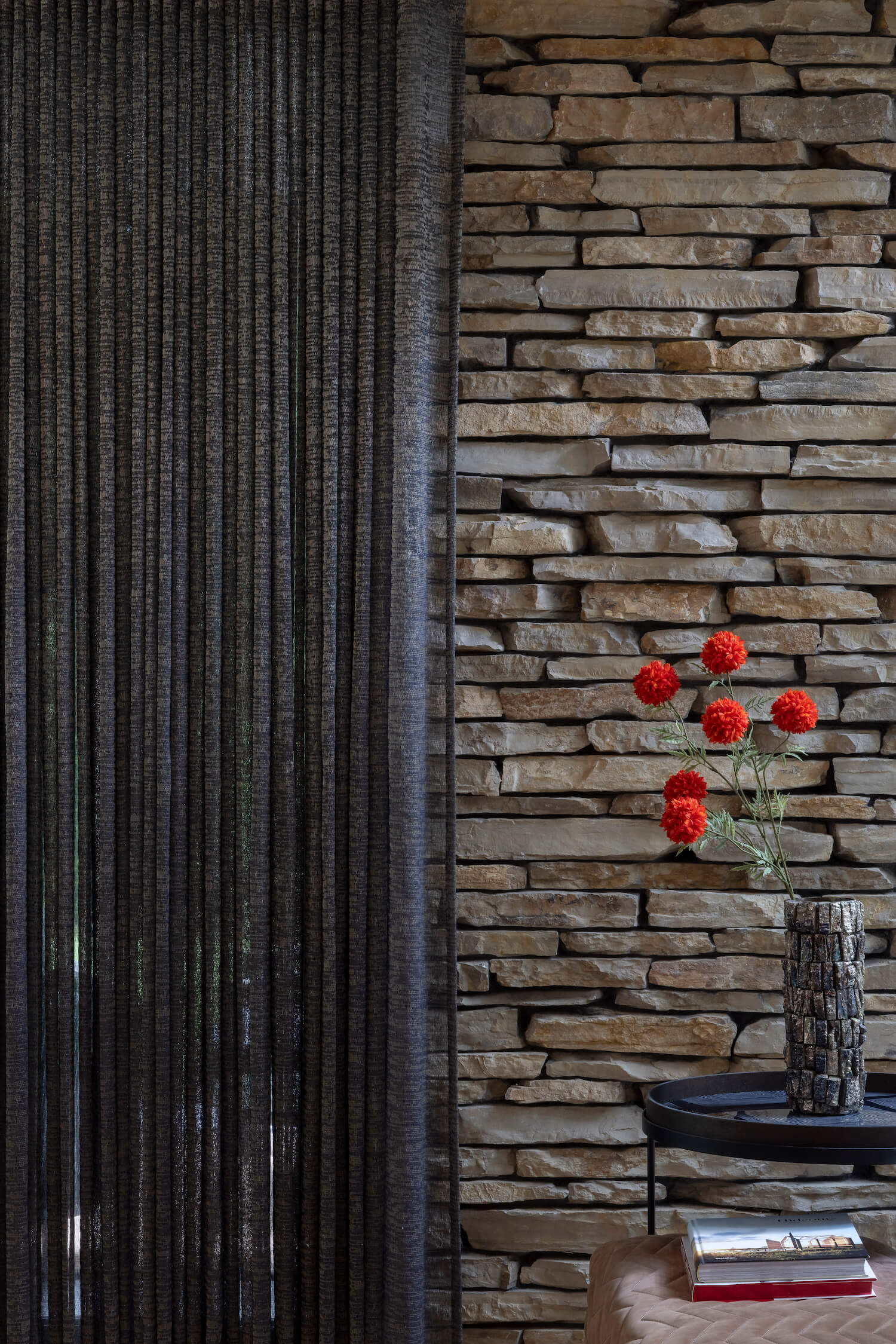 A defining element of the architecture is the use of Constanta CT12R from the LAPIDE Rocks collection, selected for their soft yellow-beige tones and Mediterranean character. Applied across the façades, the stone gives the villa a cohesive, tactile identity that harmonizes beautifully with the greenery around it. The result is a residence that feels both refined and grounded, a true forest retreat shaped by natural materials.