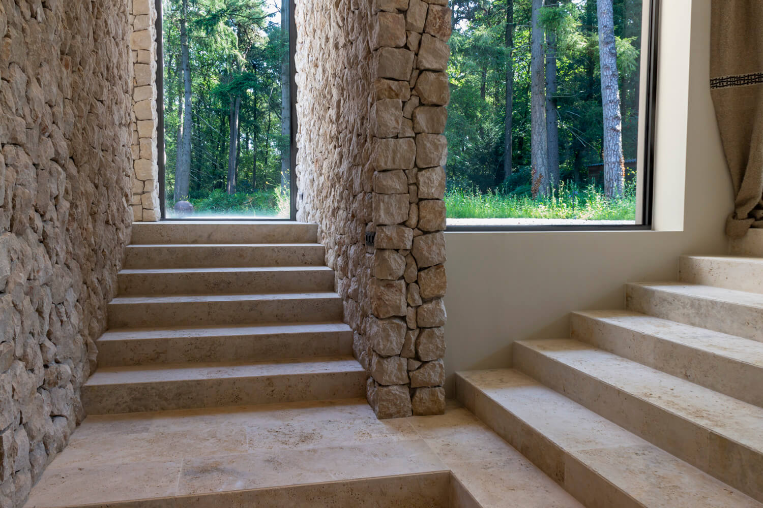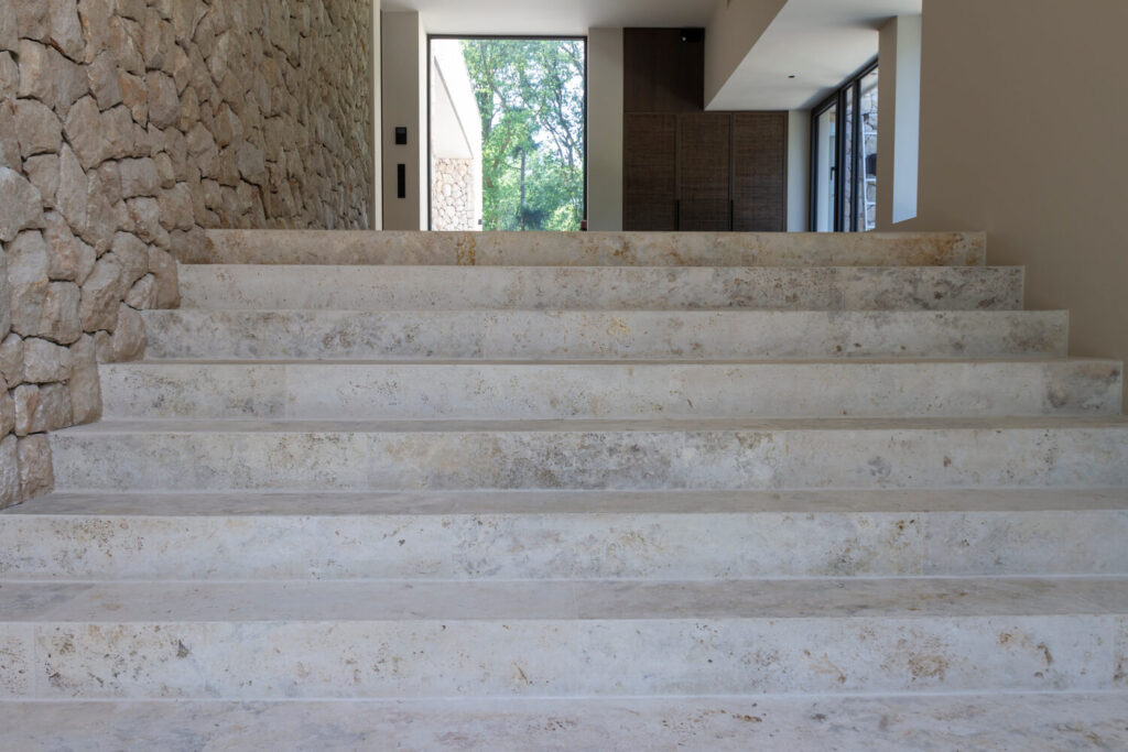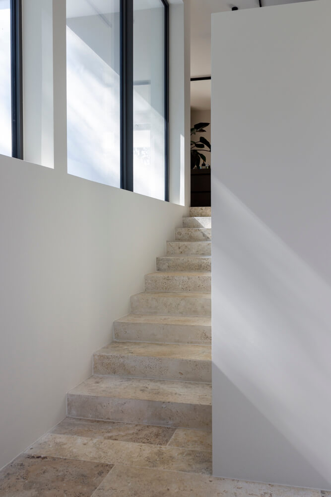 In this project, the natural stone flooring becomes the quiet foundation of the entire design. The material language of the natural stone façade is carried seamlessly into the interior, creating a cohesive architectural identity throughout the home. Visible across the spaces, the floor brings calm, elegance and authenticity, with subtle tonal variation that feels both luxurious and grounded.