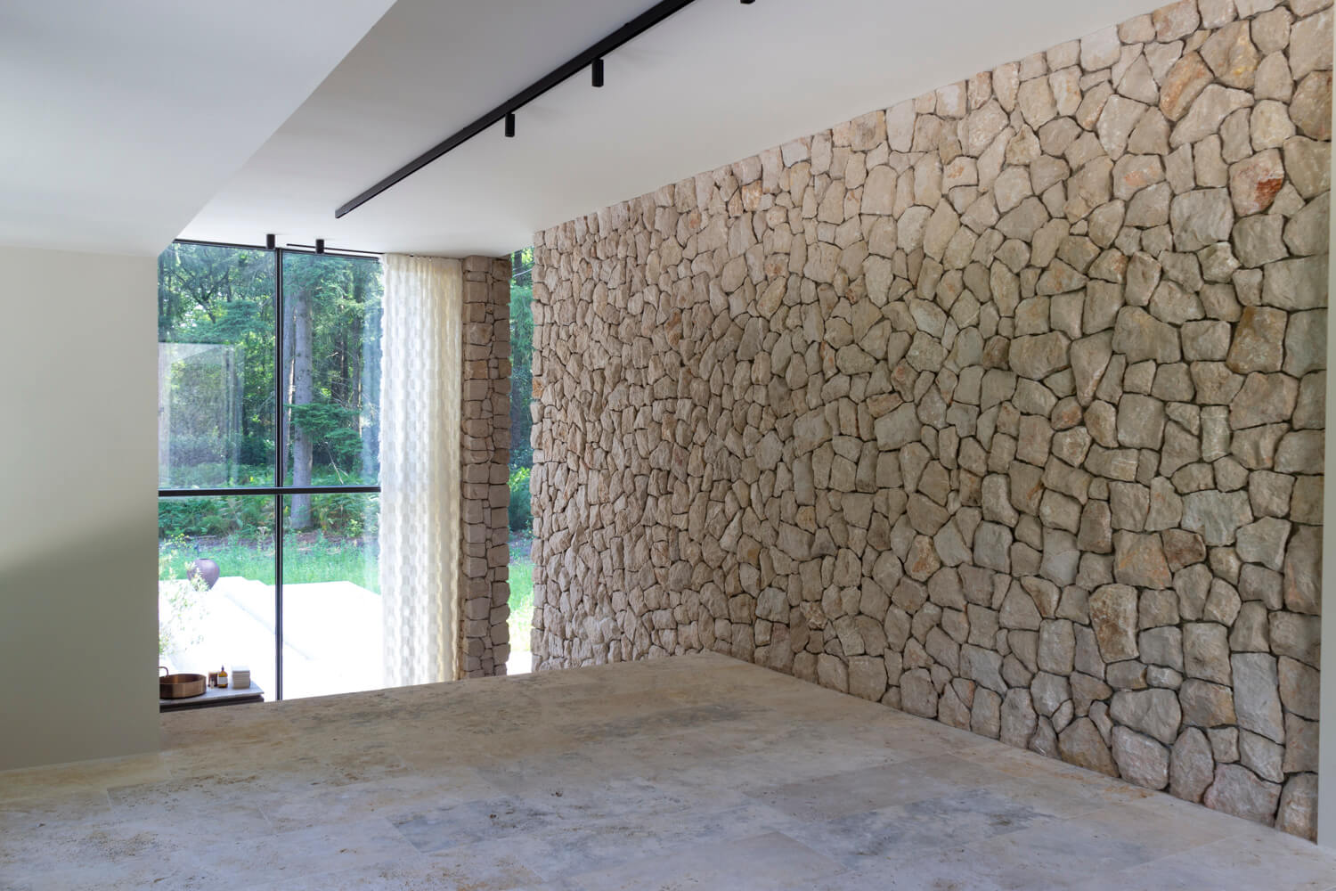For this interior, rectangular natural stone tiles were chosen to create a clean and modern rhythm across the floor. The elongated format enhances spatial flow and adds architectural clarity, while the stone’s organic texture introduces warmth and depth. The result is a flooring surface that is both sophisticated and timeless, a true signature of LAPIDE craftsmanship.